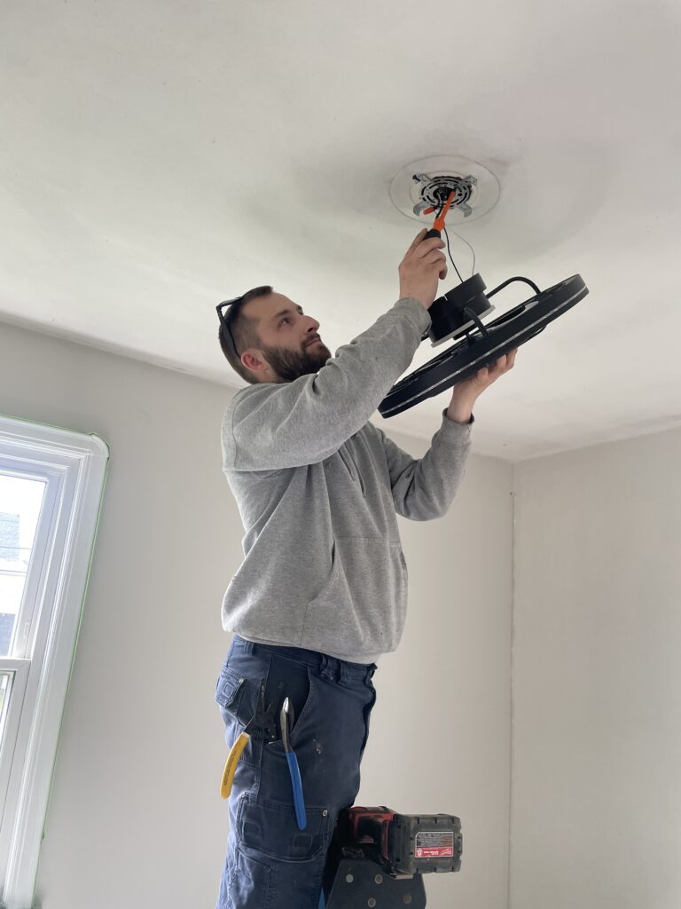 Our role in the transformation focused on making sure the room was safe, functional, and bright. One of our electricians, Vince, volunteered time and expertise to help install lighting that would complete the space and make it truly shine.