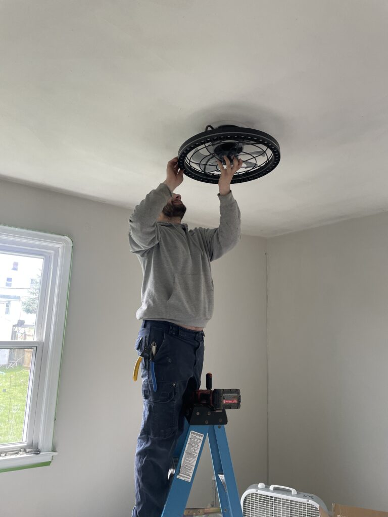 In the photos from the project, Vince can be seen carefully installing a ceiling light fixture—standing on a ladder, wiring with precision, and ensuring every detail was done right. It’s routine work for our team, but in this setting, it carried extra meaning. Proper lighting isn’t just about visibility—it helps create an environment that feels warm, welcoming, and complete.